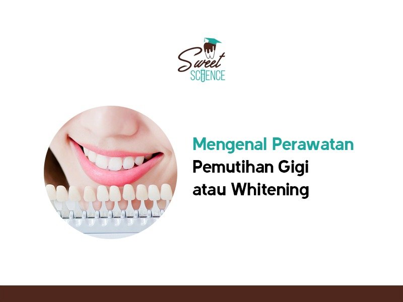 Whitening Gigi adalah tindakan medis untuk memutihkan dan mencerahkan gigi. Prosedur ini efektif untuk mengatasi perubahan warna gigi tanpa mengangkat lapisan permukaan gigi (enamel). Sweet Tooth’s perlu berdiskusi terlebih dahulu dengan dokter gigi sebelum memutihkan gigi tertentu. Beberapa faktor akan dipertimbangkan untuk menentukan teknik whitening gigi, yaitu meliputi: