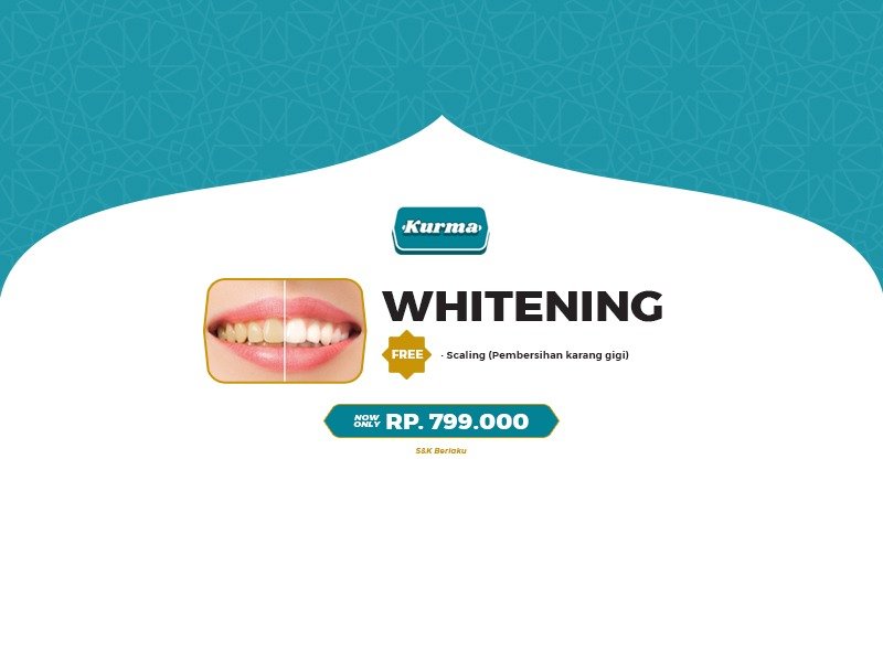 Marhaban Yaa Ramadan Sweet Tooth’s! Senyum kembali putih di bulan Ramadan karena terbebas dari masalah gigi yang menguning. Jangan sampai lebaran tampil tidak percaya diri ketemu banyak orang karena minder punya gigi yang kuning. #KejutanRamadan Whitening cukup dengan Rp 799,000 kamu bisa punya senyum cemerlang lebih natural. Sambut Hari Raya jadi makin percaya diri dengan senyuman lebar, karena senyum juga ibadah bukan? Reservasi sekarang dengan klik di sini ya!