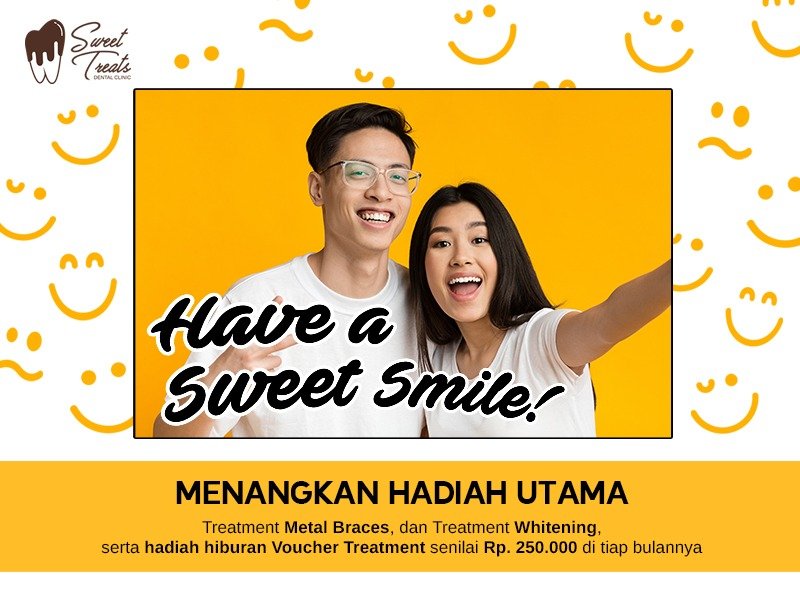 Halo Sweet Tooth's! Ini dia yang ditunggu tunggu kejutan akhir tahun dari Sweet Treats! Mau pasang Metal Braces GRATIS tanpa dipungut biaya apapun? Sekarang kesempatannya dengan ikutan Challenge #HaveASweetSmile di Instagram! Bukan hanya Metal Braces, kamu juga bisa menangin hadiah treatmeng Whitening, dan Voucher Treatment senilai ratusan ribu setiap bulannya.
